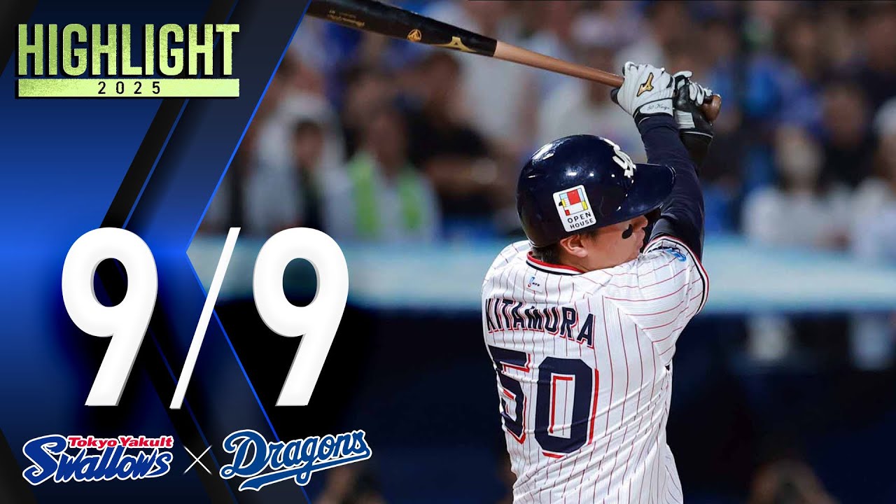 【スワローズ活躍シーン】北村恵吾選手、値千金!逆転2点タイムリー! 9月9日 東京ヤクルトスワローズvs中日ドラゴンズ(神宮球場)