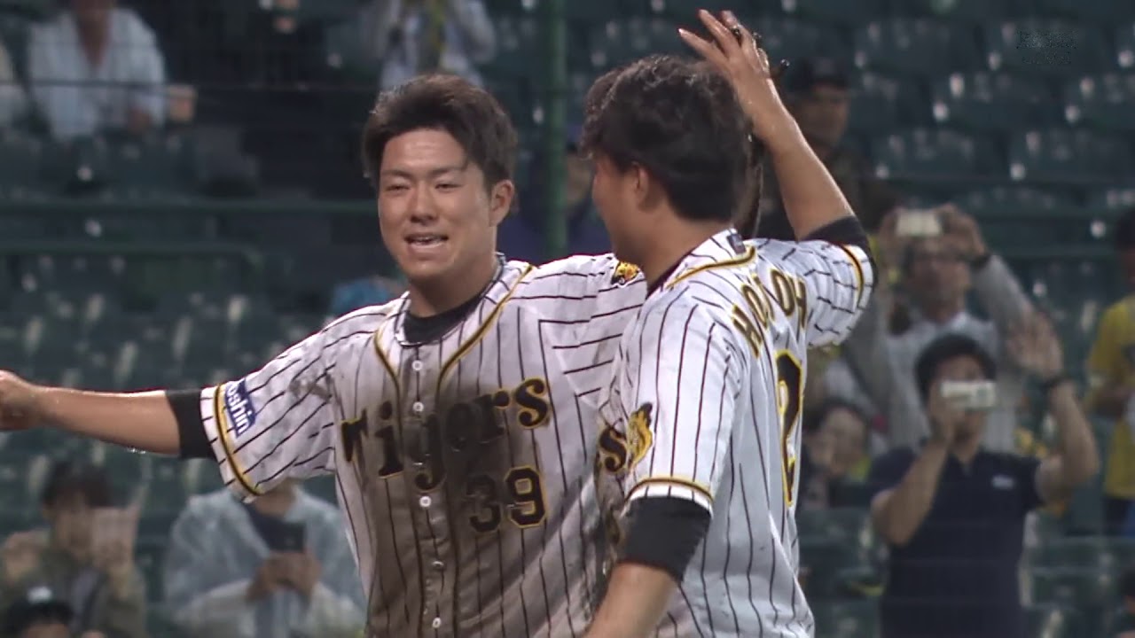 まずは肩を組んでホームベースまで近づくと、長坂は一塁方向へ、北條は三塁方向へ向かってダッシュ。それぞれ二塁ベースへ足ですべり込むと、次は長坂が三塁を回って、途中踊りながら頭からホームイン。続いて北條も、逆の一塁側から飛び込んだ。2人で得意げにスタンドへお辞儀すると、ずぶぬれになったファンから喝采を受けた。