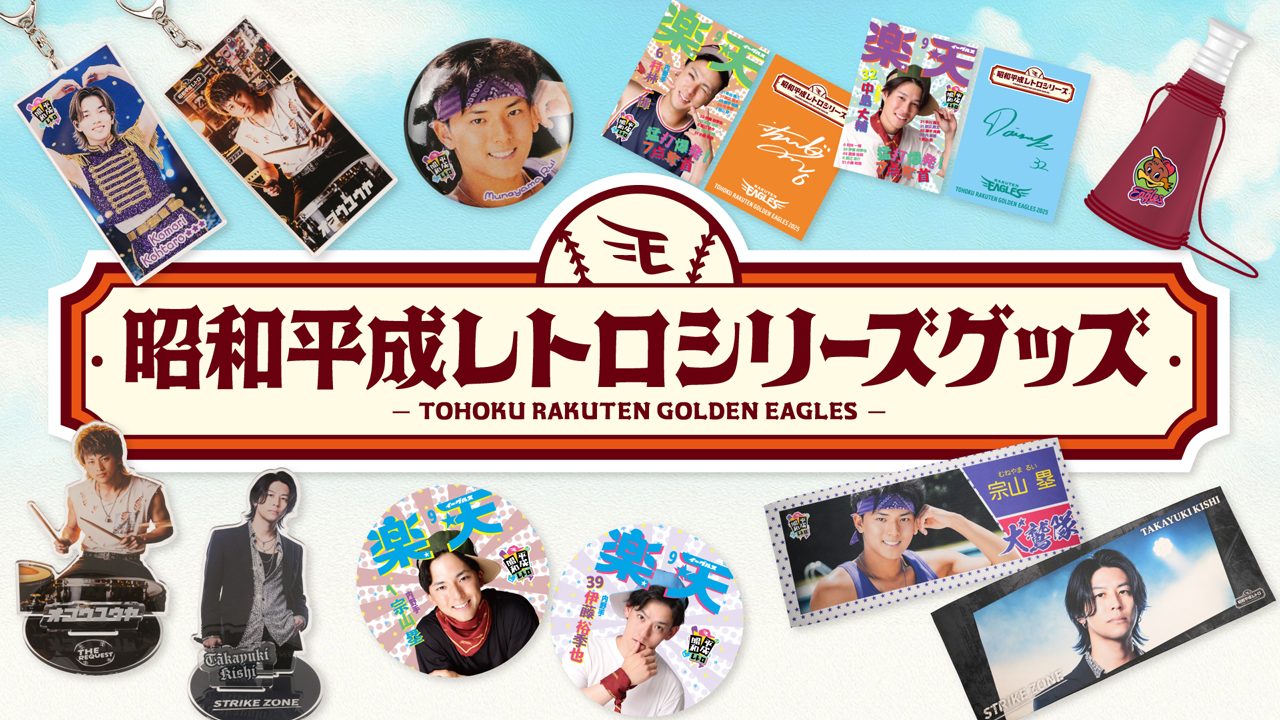 【9/12(金)】昭和平成レトロシリーズのグッズが販売! 東北楽天ゴールデンイーグルス選手が生成AIで大胆“変身” 昭和&平成のミュージシャンにアレンジ…楽天の人気企画(Full-Count) Yahoo!ニュース選手が昭和平成にタイムスリップ!? 担当者が語る「昭和平成レトロシリーズ」の裏側 パ・リーグ.comPlayers travel back in time to the Showa and Heisei eras!? Behind the scenes of the “Showa and Heisei Retro Series” by a staff member | Pacific League | Professional baseball パ・リーグ.com