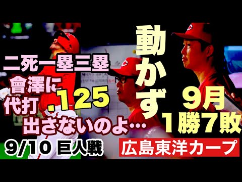 【広島東洋カープ】9/10 巨人戦 6連敗 9月まだ1勝 これは・・・ 大瀬良もやっぱり東京ドームで勝てませんね 回避させないと・・・ 【大瀬良大地】【會澤翼】【野村謙二郎】【新井貴浩】【カープ】