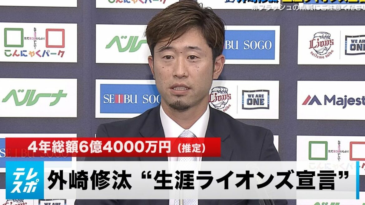 外崎選手は先月、今季取得したFA権を行使した上で西武への残留を決め、新たな4年契約を発表したばかり。
