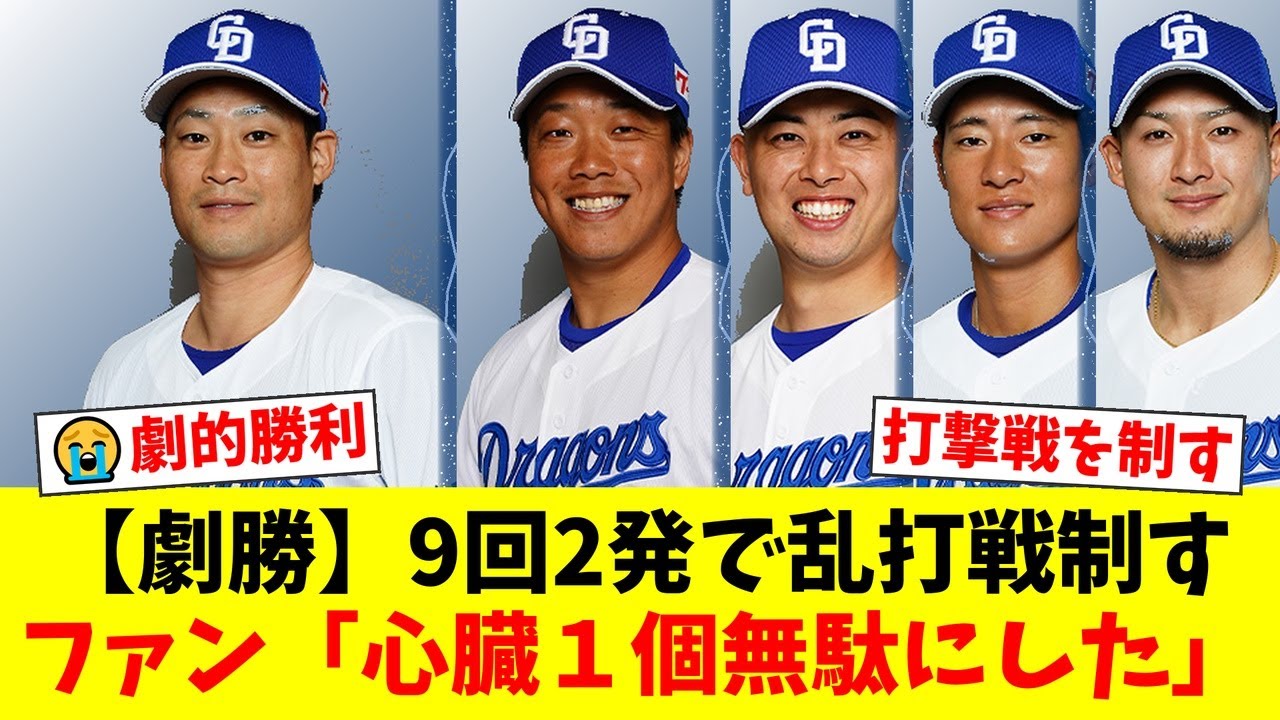 【中日】壮絶乱打戦!DeNAとのシーソーゲームを9回のボスラー&加藤匠馬の連続HRで制す!ファンからは「とんでもない試合」「心臓が持たない」と興奮の声【プロ野球ファンの反応】