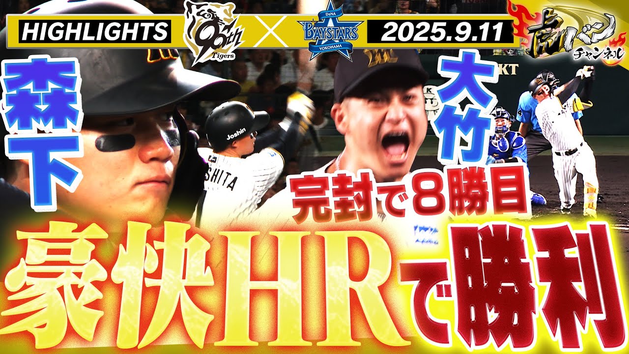 【9月11日 阪神-DeNA ハイライト】森下が超豪快弾!大竹が甲子園初の完封勝利で吠えた!!阪神タイガース密着!応援番組「虎バン」ABCテレビ公式チャンネル