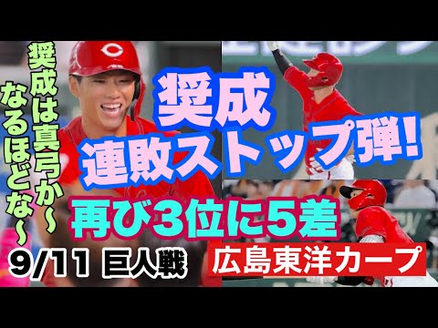 【広島東洋カープ】9/11 巨人戦 何とか連敗ストップです! 奨成の一撃が救ってくれましたねえ・・・ 一応3位と5差になりました 【髙太一】【中村奨成】【小園海斗】【黒田博樹】【新井貴浩】【カープ】