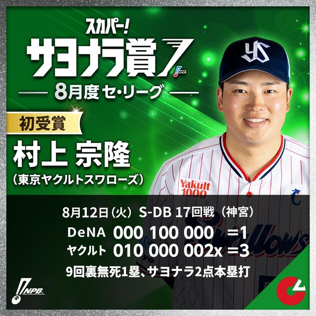 8月度「スカパー!サヨナラ賞」受賞者決定