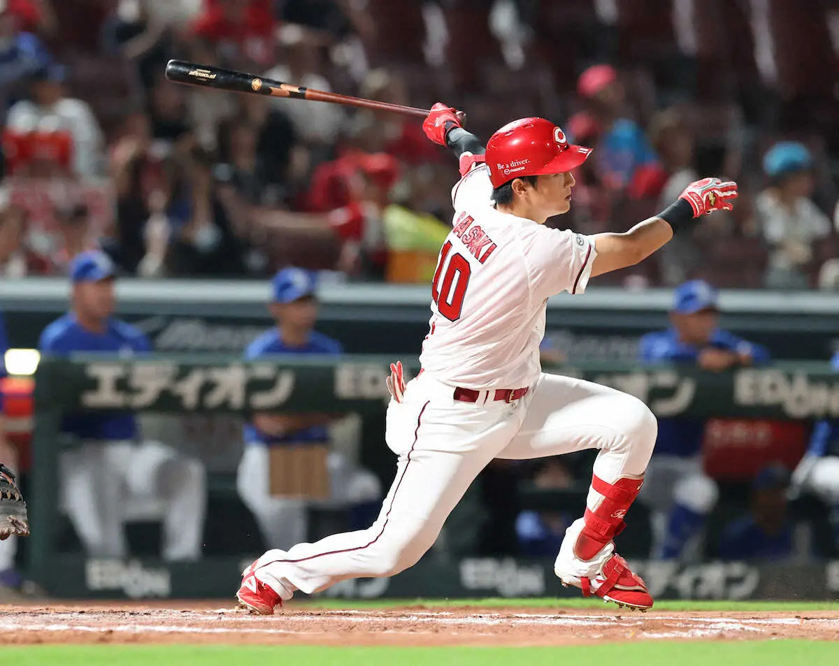 大量リードの展開でも、広島・佐々木の集中力は途切れなかった。8―0の7回2死一塁。カウント1―1から伊藤のカーブを左前へ運び、プロ初の3安打をマークした。