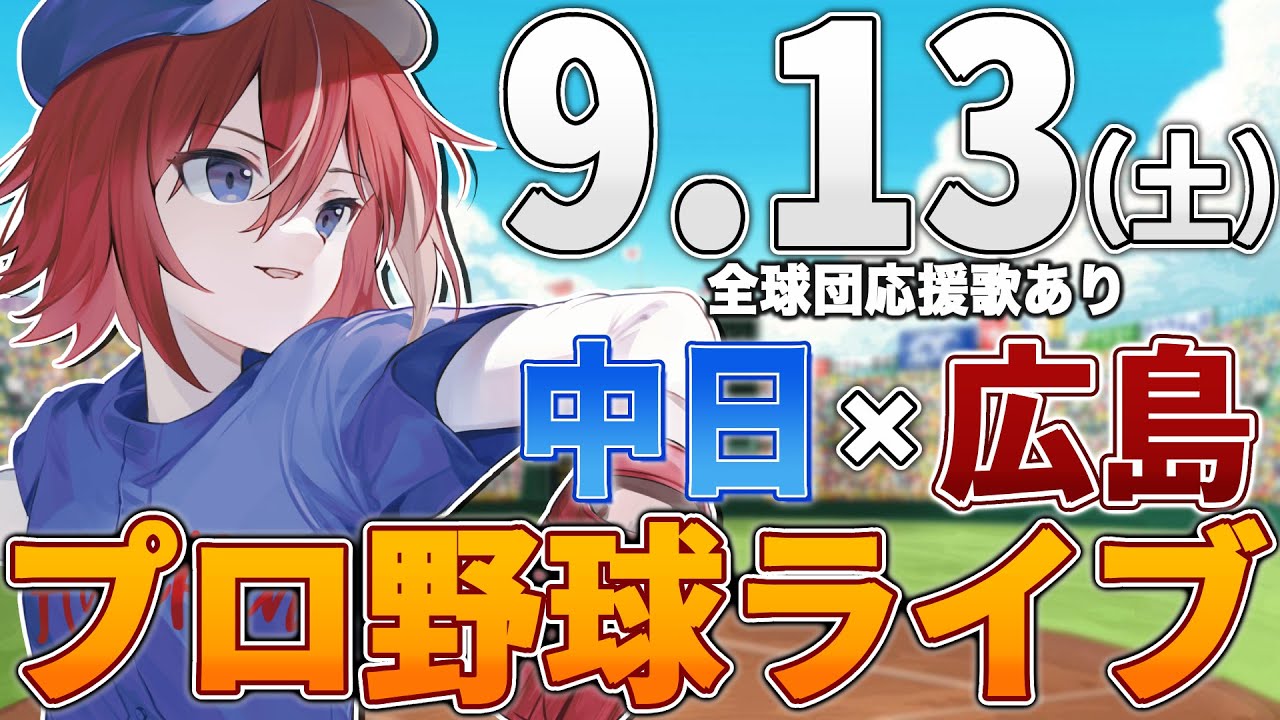 【プロ野球ライブ】広島東洋カープvs中日ドラゴンズのプロ野球観戦ライブ9/13(土)広島ファン、中日ファン歓迎!!!【プロ野球速報】【プロ野球一球速報】中日ドラゴンズ 中日ライブ 中日中継