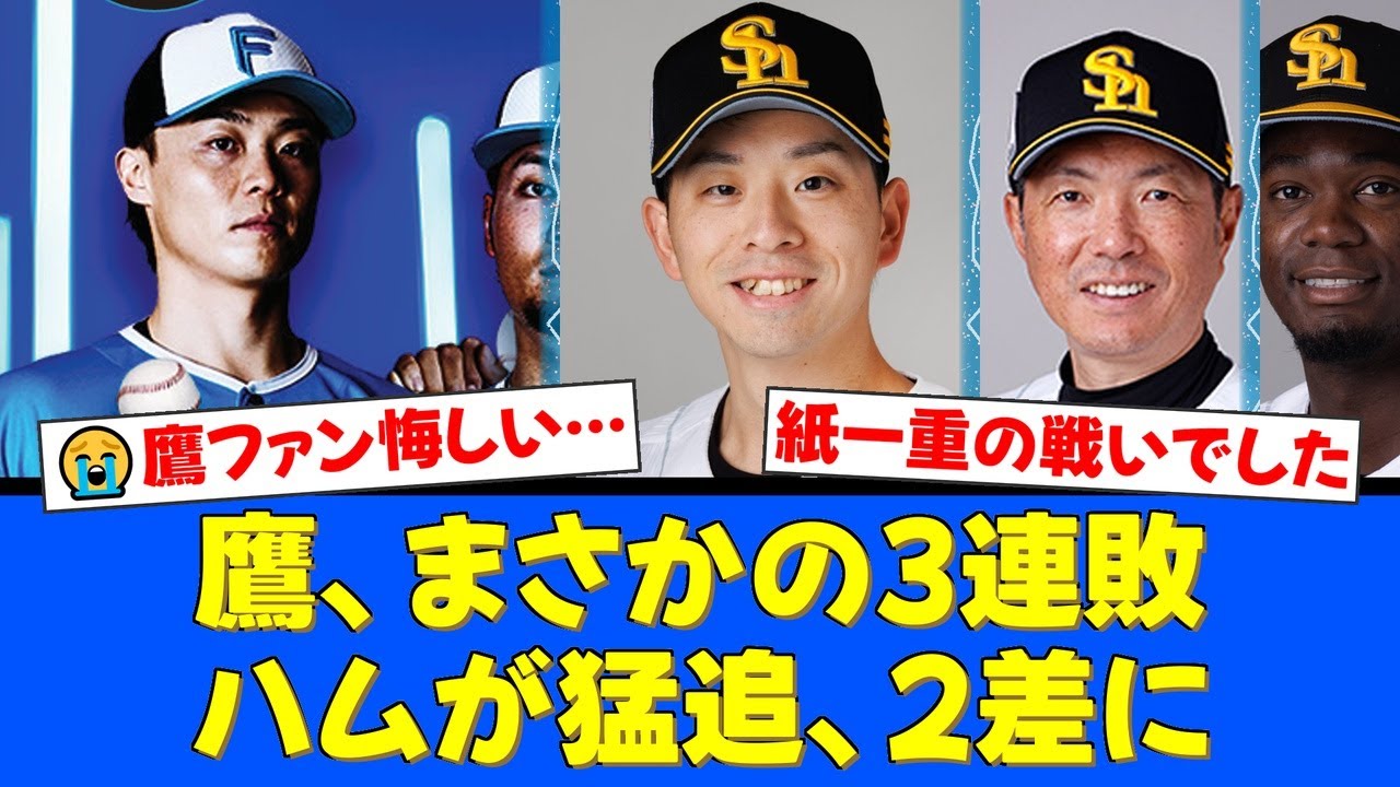 首位ソフトバンクがまさかの3連敗を喫し、2位ファイターズとのゲーム差はついに『2』に!先発の大関友久投手が2回4失点で降板するなど投手陣が崩れ、マジックは15で足踏み。逆転優勝へ、ファンの期待は最高潮に達しています!