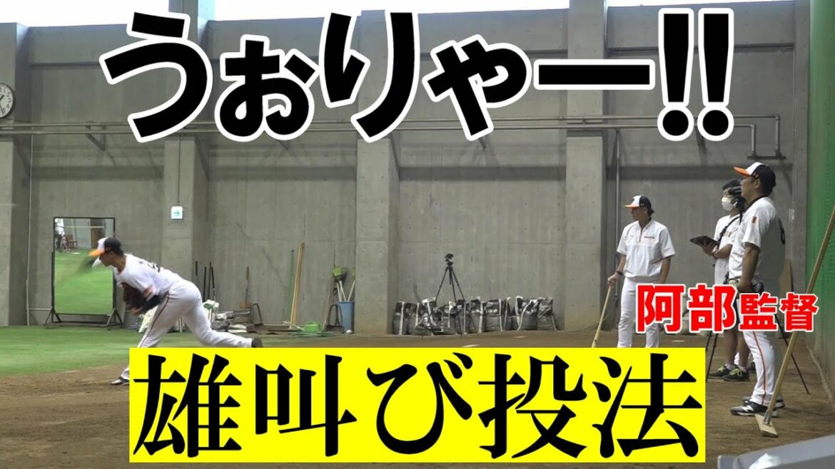 7月8日の練習。阿部慎之助二軍監督が直江大輔投手に、声を出して投げるように指導。雄たけびを上げながら投げる直江投手はブルペン捕手が驚くほどの球威を見せました。