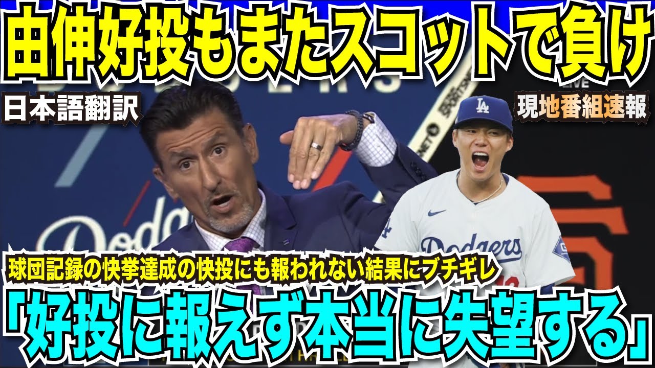 【翻訳速報】山本由伸7回1失点被安打1の好投で100年ぶり偉業も、またタナースコットが救援失敗でサヨナラ満塁弾被弾で敗戦。現地放送局も「好投に報えず本当に失望する」とブチギレ【日本語翻訳】