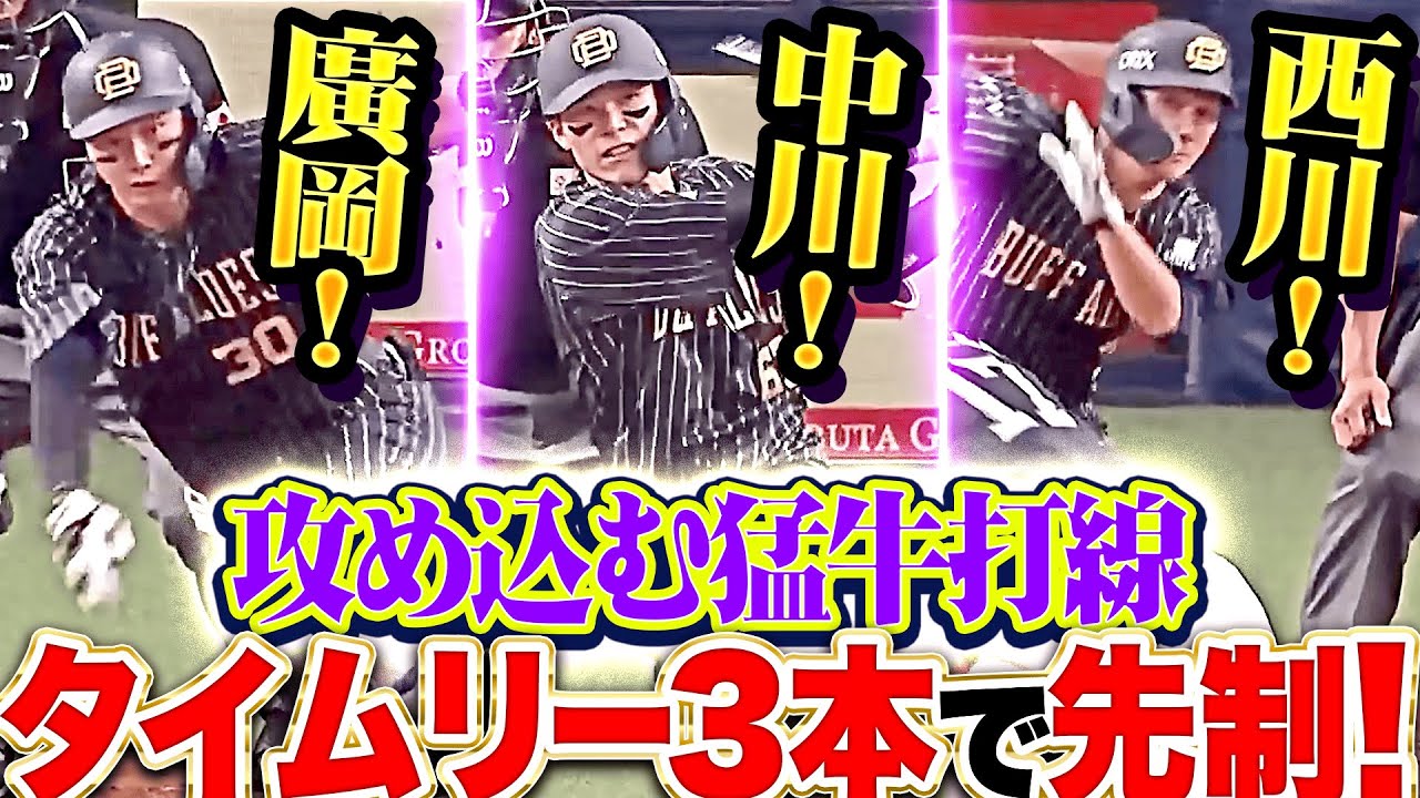 オリックスは3回、宗佑磨のチーム初安打などで1死1,3塁とすると、廣岡大志が外角低めのボールゾーンに逃げていくフォークを巧みに弾き返す先制タイムリーを放ち、塁上で熱くガッツポーズ!! さらに続いた好機で中川圭太・西川龍馬の適時打も飛び出し、3点を先制!!