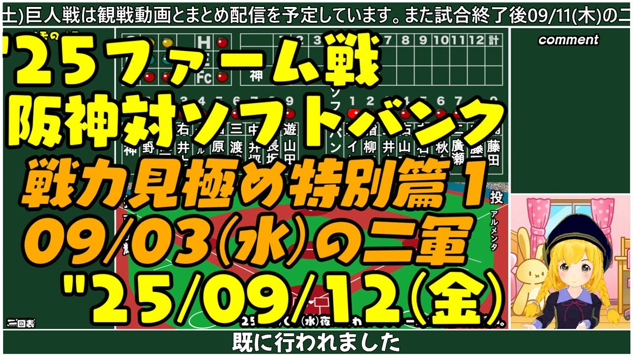 “25/09/03(水)夜に行われた二軍ファーム戦を見ていきます。