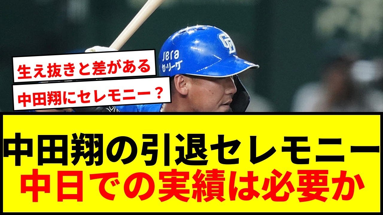 【速報】中日、中田翔の引退セレモニーを19日に実施!祖父江&岡田は20日…ファンから賛否両論