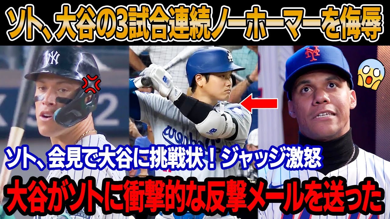 「翔平は敗者だ!48本HRなんて無価値」30-30を達成したフアン・ソト、大谷の3試合連続ノーホーマーを侮辱!ソト、大谷に宣戦布告!ジャッジ、ソトを叱責 ! 大谷がソトに衝撃的な反撃メールを送った