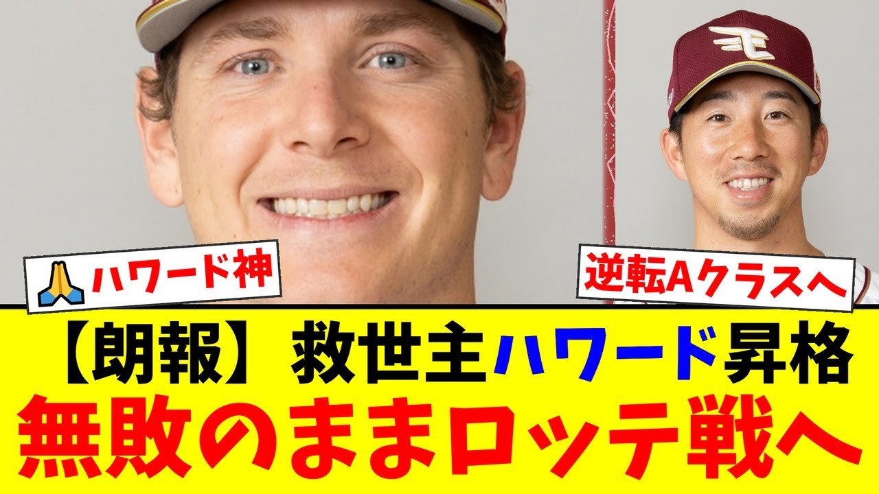【楽天】逆転Aクラスへ最後の切り札!不調の今野龍太に代わり、4勝0敗防御率1.53の無敗助っ人ハワードが緊急昇格!ファンの期待は最高潮に!【プロ野球ファンの反応】
