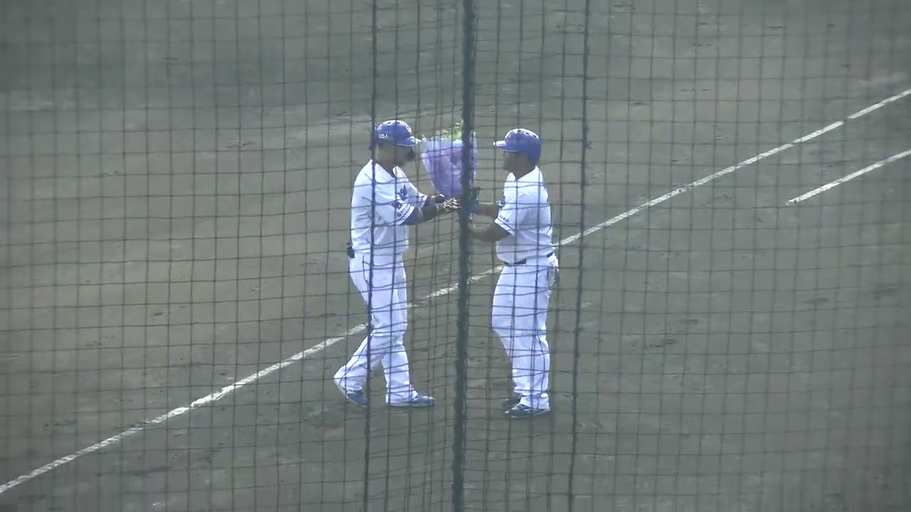 中日ドラゴンズ 中田翔選手、打席を終えて大阪桐蔭高校の先輩 平田良介コーチから花束を渡される #dragons #chunichidragons ボールデッド中 Chunichi Dragons中日ドラゴンズ平田良介 NPBHUB.COM | The Fanbase of Nippon Baseball & Nippon Professional Baseball