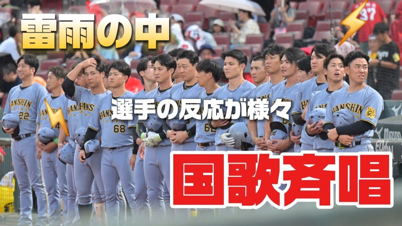 【選手もビックリ!】雷雨の中、国歌斉唱で選手の反応も様々【4K】 エグい雨でした😇 ぜひ4Kでお楽しみください() #阪神タイガース #国歌斉唱 #プロ野球 #藤川球児 #近本光司 #大山悠輔 #木浪聖也 #熊谷敬宥 #中野拓夢 #糸原健斗 #植田海 #原口文仁 #楠本泰史 #小野寺暖 #井坪陽生 #中川勇斗 #梅野隆太郎 #榮枝裕貴 #高寺望夢 #上本博紀 #田中秀太 #小谷野栄一 #藤本敦士 #筒井壮 HanshinHanshin Tigershanshintigersカープセ・リーグ広島榮枝裕貴阪神阪神タイガース NPBHUB.COM | The Fanbase of Nippon Baseball & Nippon Professional Baseball