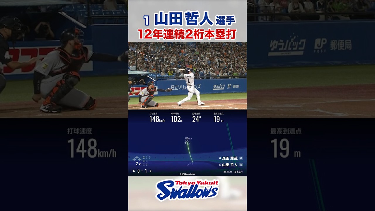 山田哲人選手 12年連続2桁本塁打 #swallows #山田哲人 #shorts