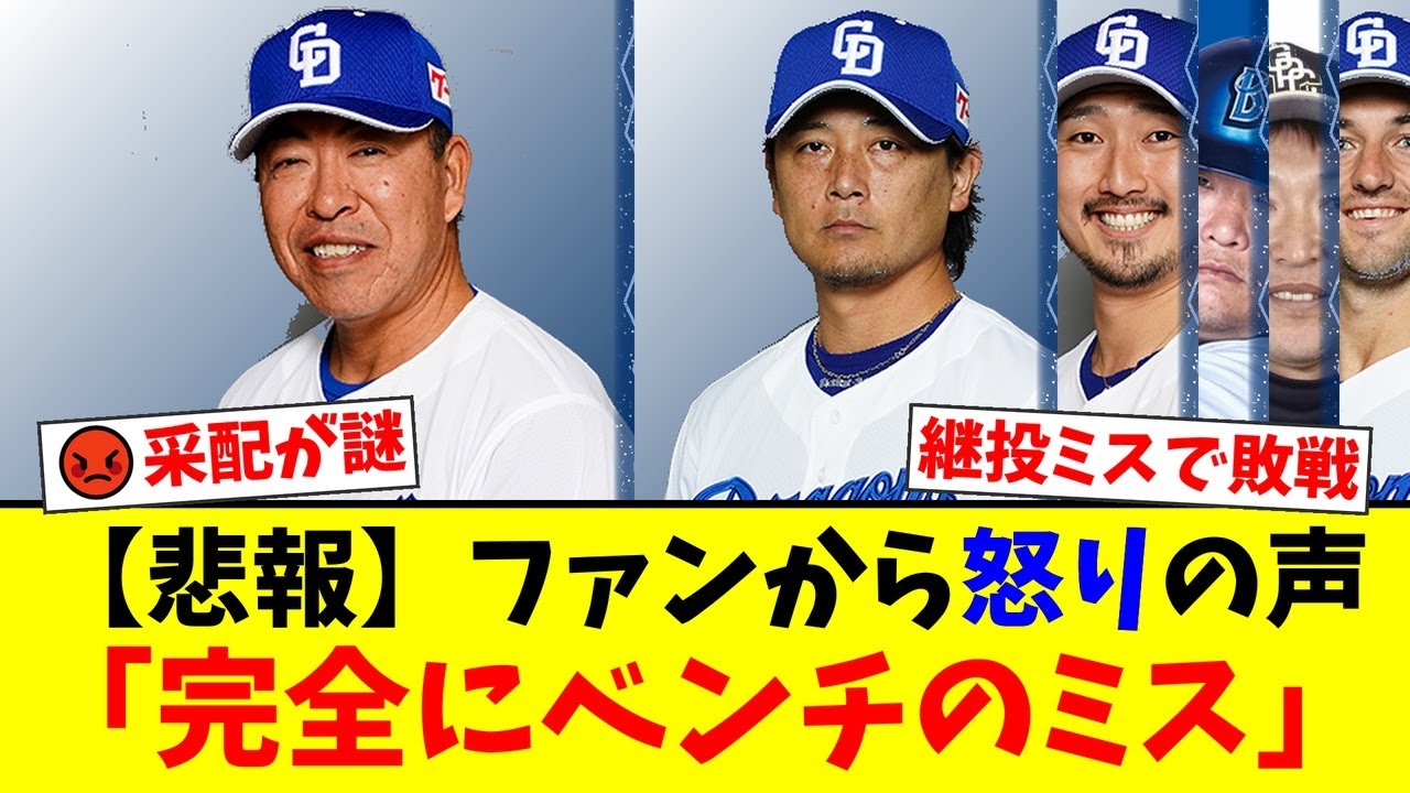 この試合の井上監督の采配、特に涌井投手の続投判断や藤嶋健人投手の回跨ぎ起用に対し、ファンからは「完全にベンチのミス」「采配に一貫性がない」といった厳しい声が殺到しています。