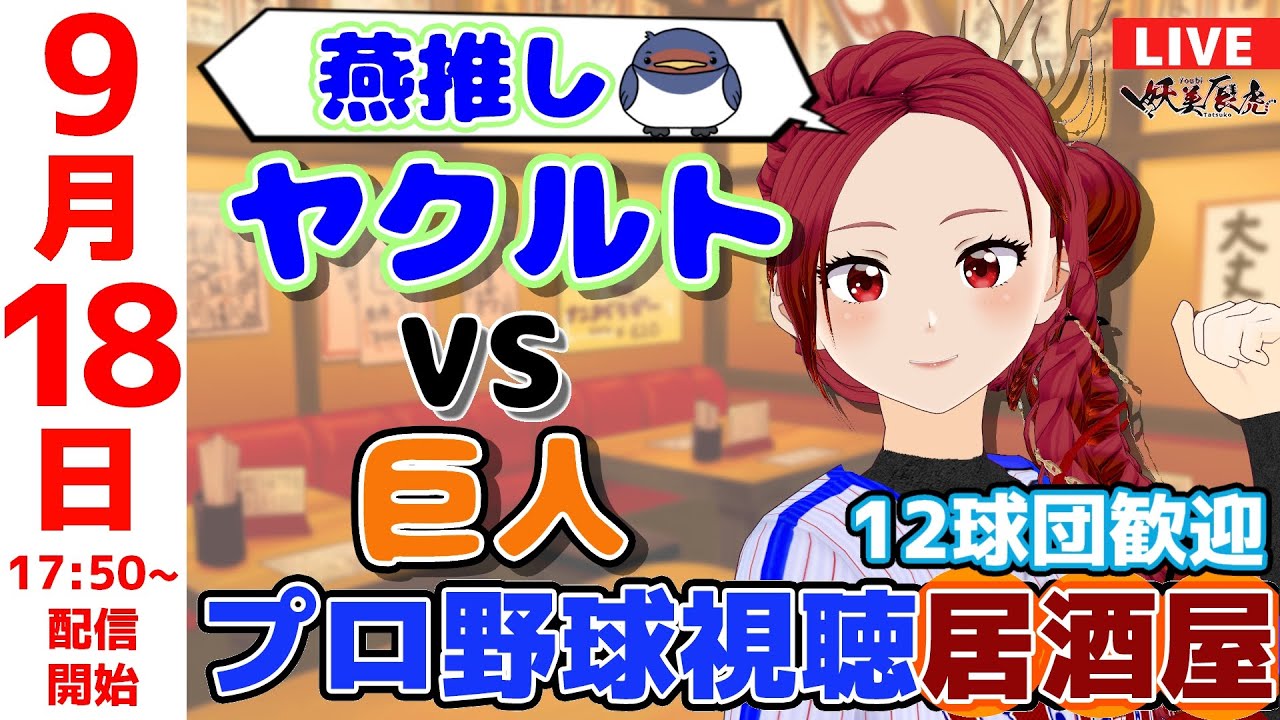 【 ヤクルト 同時視聴 応援 】2025/9/18 ゆる~くプロ野球雑談!12球団歓迎! #妖美辰虎【 Vtuber #東京ヤクルトスワローズ #読売ジャイアンツ 巨人 】