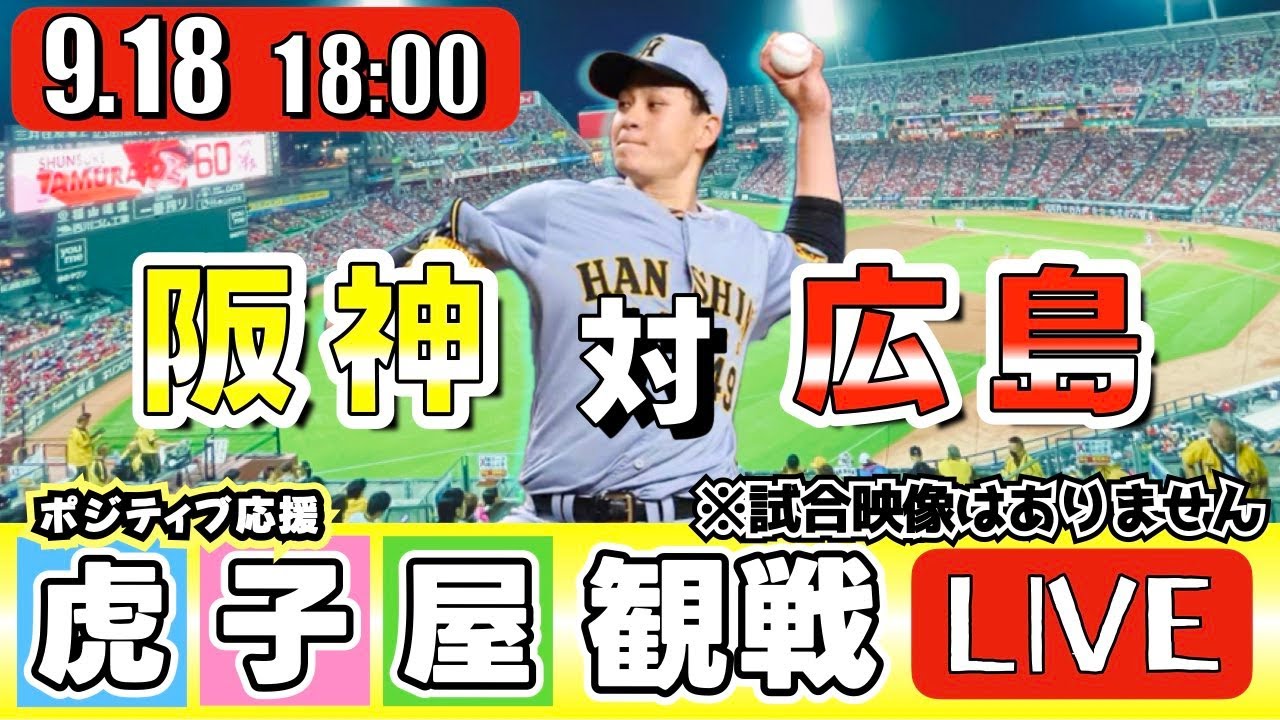 【全力応援 阪神ライブ】9/18 阪神タイガース 対 広島東洋カープ の公式戦を阪神ファン夫婦が皆さんと一緒に観戦・応援するLIVE配信です。 先発予想:(阪神)大竹耕太郎 (広島)髙太一