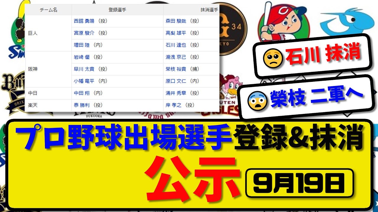 【公示】プロ野球 出場選手登録&抹消 公示9月19日発表|森田&高梨&石川&湯浅&榮枝&原口&涌井&岸ら抹消|西舘&宮原&増田&岩崎&小幡&中田&泰ら登録【最新・まとめ・反応集・なんJ・2ch】 #阪神タイガース #広島カープ #横浜DeNAベイスターズ #読売ジャイアンツ #ヤクルトスワローズ #中日ドラゴンズ #日本ハムファイターズ #福岡ソフトバンクホークス #東北楽天ゴールデンイーグルス #オリックスバファローズ #千葉ロッテマリーンズ #西武ライオンズ #プロ野球 #反応集 #なんJ baseballBaseball newsベースボールやきゅう野球野球ボール NPBHUB.COM | The Fanbase of Nippon Baseball & Nippon Professional Baseball