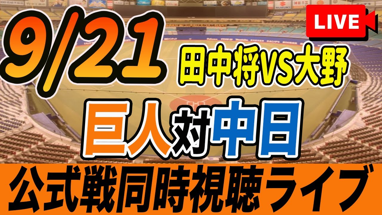 【巨人/同時視聴】9/21巨人対中日ドラゴンズ23回戦を観戦しながら雑談しようライブ配信 田中将大日米通算200勝へ 予告先発:G田中将大 D大野雄大 読売ジャイアンツ プロ野球観戦ライブ