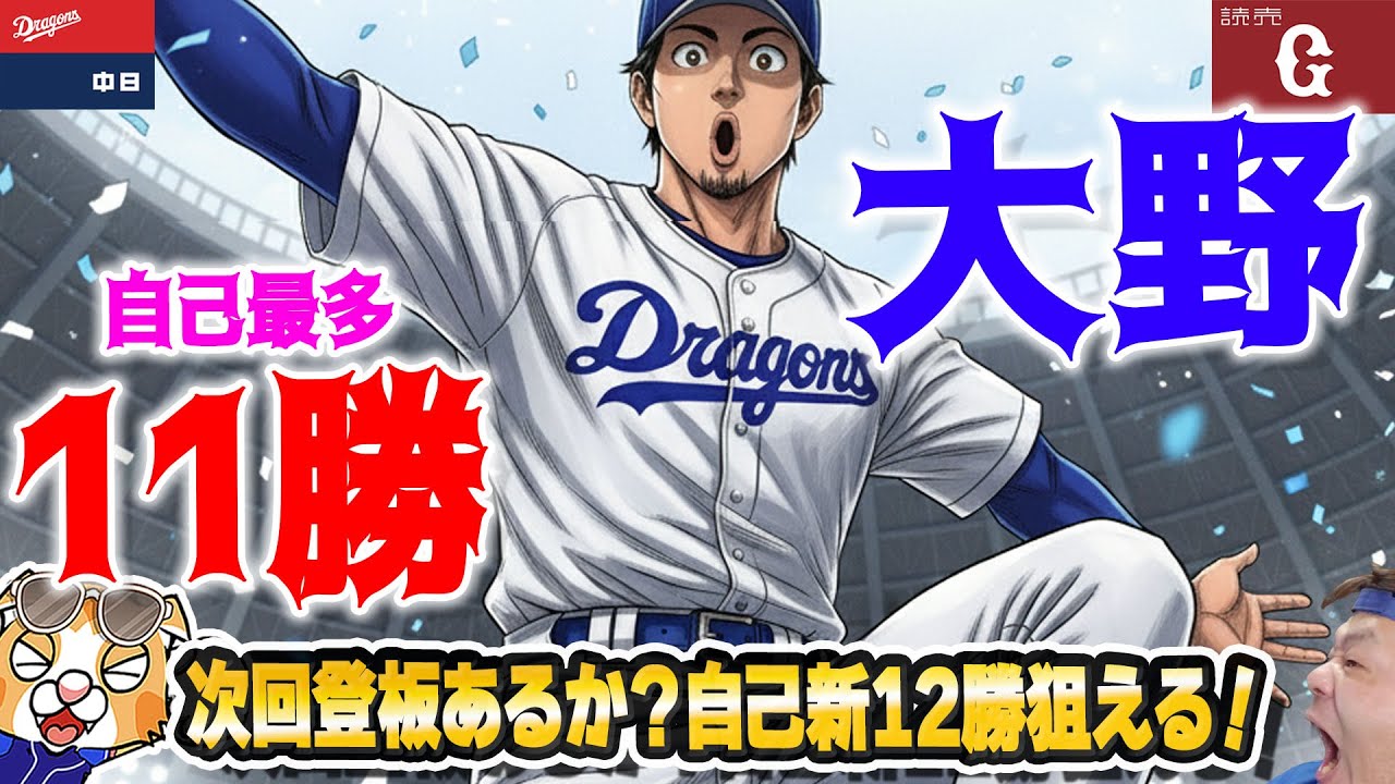 【中日ドラゴンズ】大野自己最多11勝!4位浮上いよいよ猛ダッシュが始まるのか!?祝勝会【ライブ】