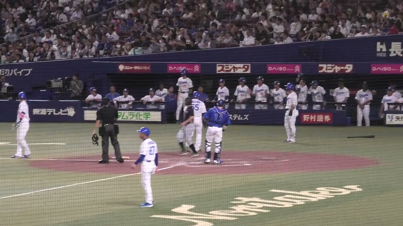 中日ドラゴンズ ボスラー選手のライト線への当たりリプレー検証中の様子→ファールからフェアとなり走者一掃となった後の様子 2025/9/18 VS 横浜DeNAベイスターズ バンテリンドーム ボールデッド中 Chunichi Dragons中日ドラゴンズ NPBHUB.COM | The Fanbase of Nippon Baseball & Nippon Professional Baseball