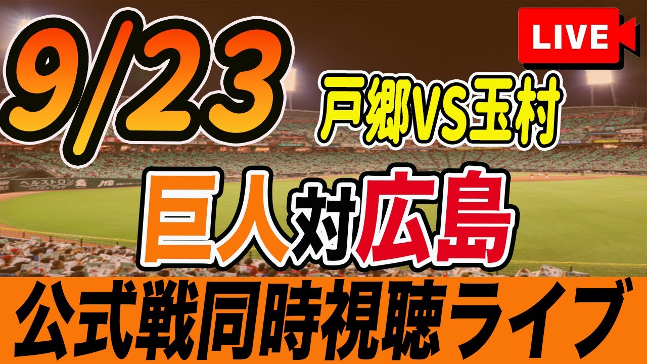 【巨人/同時視聴】9/23巨人対広島カープ25回戦を観戦しながら雑談しようライブ配信 予告先発:G戸郷翔征 C玉村昇悟 読売ジャイアンツ プロ野球観戦ライブ
