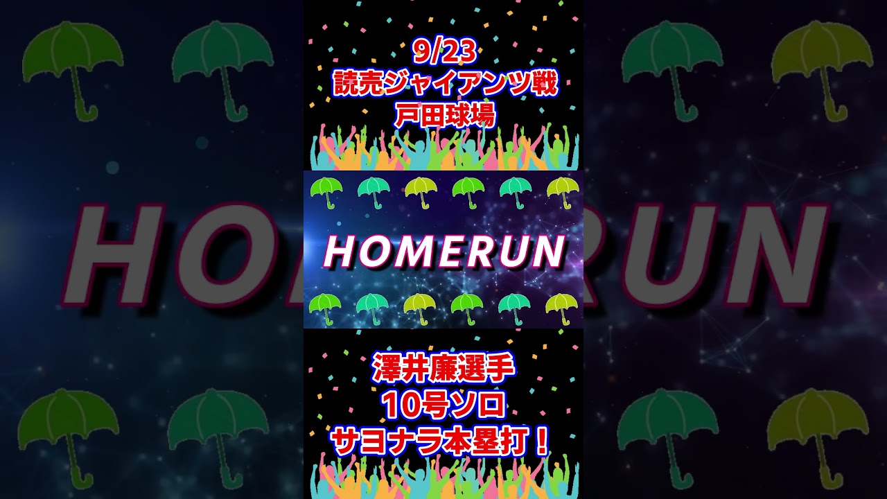 澤井廉 選手 10号ソロサヨナラ本塁打! ファーム 読売ジャイアンツ戦 9.23