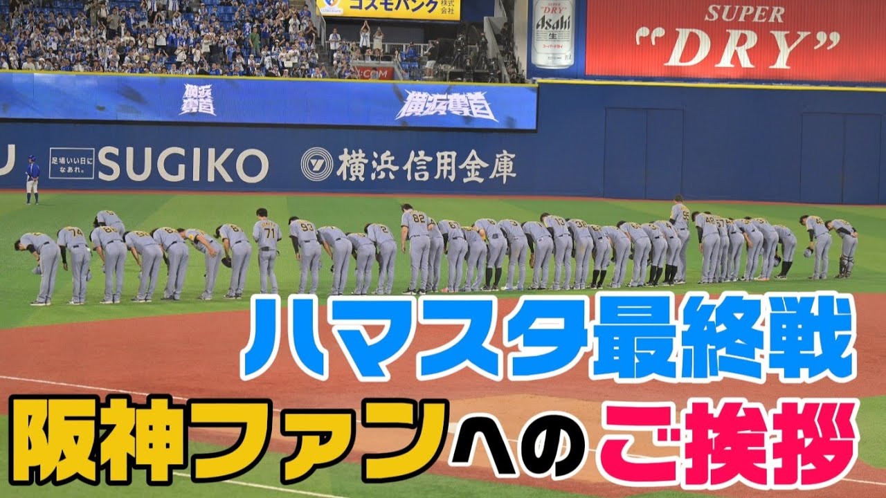 【阪神】ハマスタ最終戦、選手コーチ監督から感謝のご挨拶【DeNA】 ビジター球場最終戦シリーズこれにて終了でございます。 今年もありがとうございました! #阪神タイガース #hanshintigers #最終戦 #プロ野球 DeNADeNAベイスターズHanshin TigersNPBセ・リーグセリーグドリスハマスタベイスターズヘルナンデス中川勇斗中野拓夢佐藤輝明前川右京及川雅貴坂本誠志郎大山悠輔小野寺暖岩崎優島本浩也最終戦の挨拶木浪聖也梅野隆太郎森下翔太植田海榮枝裕貴横浜ベイスターズ消化試合熊谷敬宥畠世周茨木秀俊藤川球児近本光司野村克則阪神タイガース高寺望夢 NPBHUB.COM | The Fanbase of Nippon Baseball & Nippon Professional Baseball