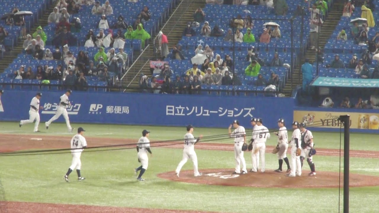 9回表2アウトで、松本健吾が木浪聖也をサードフライに打ち取り試合終了。先発の山野太一は7回無失点9奪三振で今季4勝目。