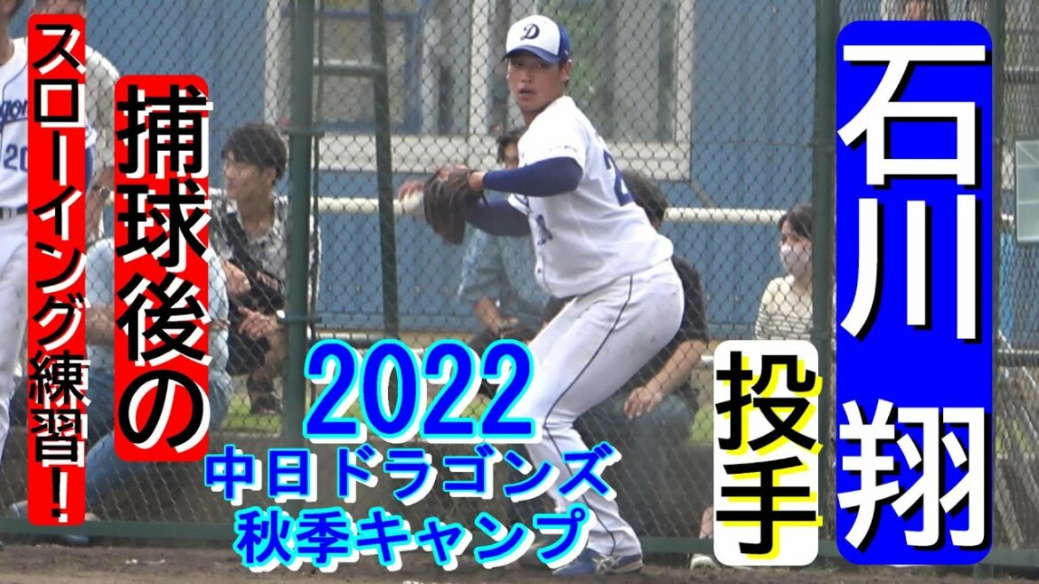 中日ドラゴンズ、2022 秋季キャンプが沖縄、agreスタジアム北谷で開催。育成契約を結んで迎える今季の石川翔投手。若手投手陣に交じり捕球後のスローイング練習風景です!