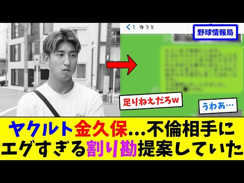 ヤクルト金久保…不倫相手にエグすぎる”割り勘”提案していた【ネット情報局】