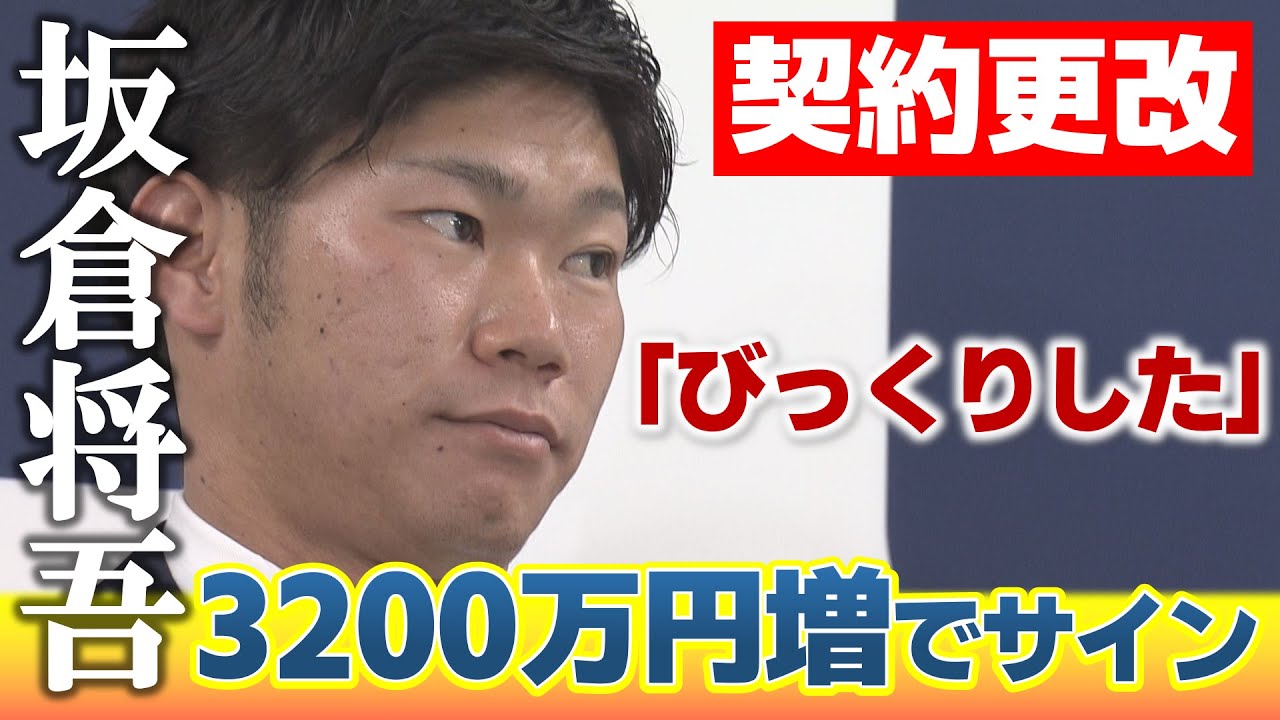 坂倉将吾捕手がマツダスタジアムで契約更改交渉に臨み、3200万円増の5000万円でサインしました。
