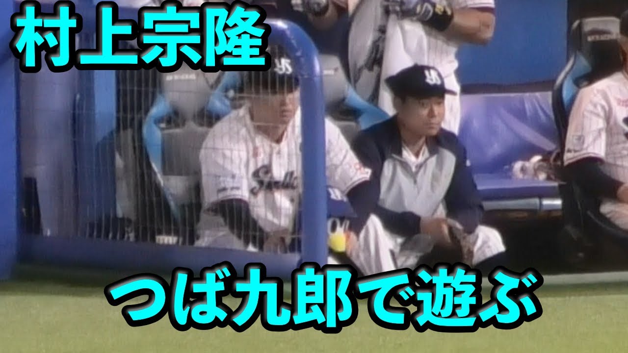 村上宗隆、つば九郎で遊びだす