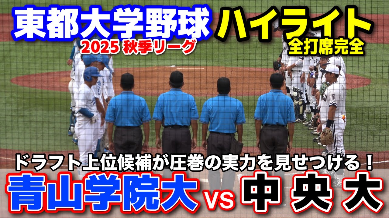 青山学院大学 vs 中央大学 スカウト熱視線!ドラフト上位候補が圧巻の実力を見せつける! 【東都大学野球 秋季リーグ1部 1回戦 全打席完全ハイライト】 2025.9.24 明治神宮球場