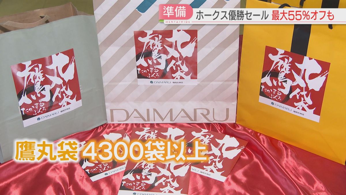 恒例の「鷹丸袋」といわれるお買い得商品をセットにした福袋を4300袋以上、そのほかにも120ブランド以上の商品が最大で55パーセントオフとなるセールの準備を進めています。