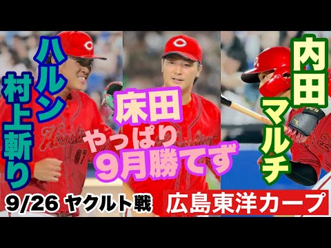 【広島東洋カープ】9/26 ヤクルト戦 大敗で最下位の可能性消えず! 床田の10勝、届きませんでしたね・・・ 滝田やハルン、内田が頑張りましたねえ・・・ 【床田寛樹】【内田湘大】【新井貴浩】【カープ】
