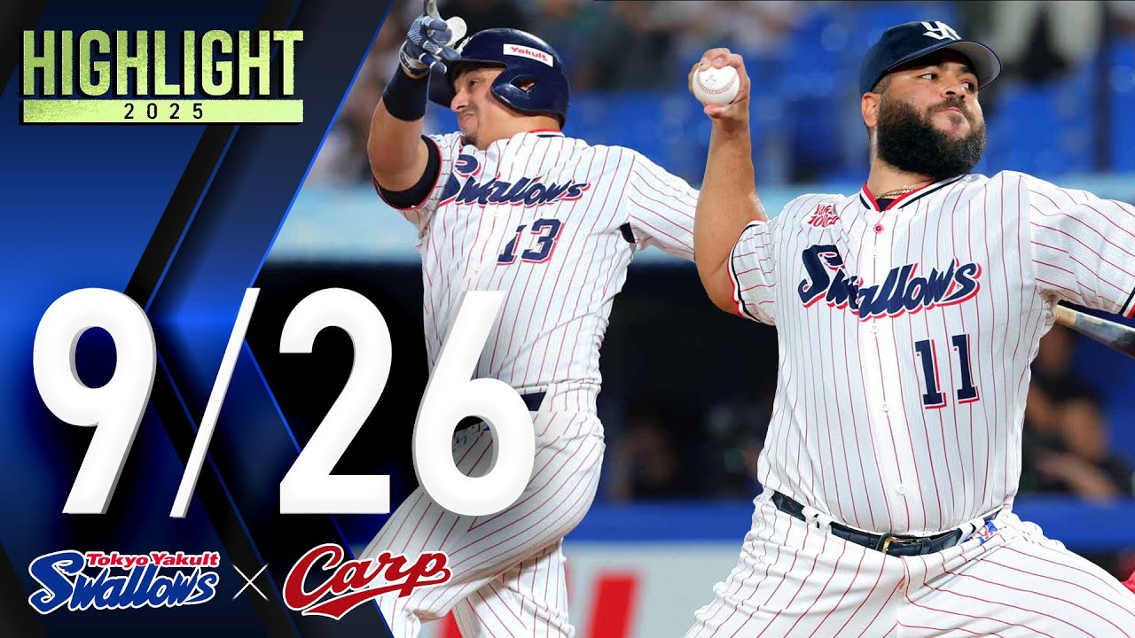【スワローズ活躍シーン】オスナ選手、2打席連続タイムリー含む3安打猛打賞&アビラ投手、6回1失点で7勝目&タイムリーヒットも!9月26日 東京ヤクルトスワローズvs広島東洋カープ(神宮球場)