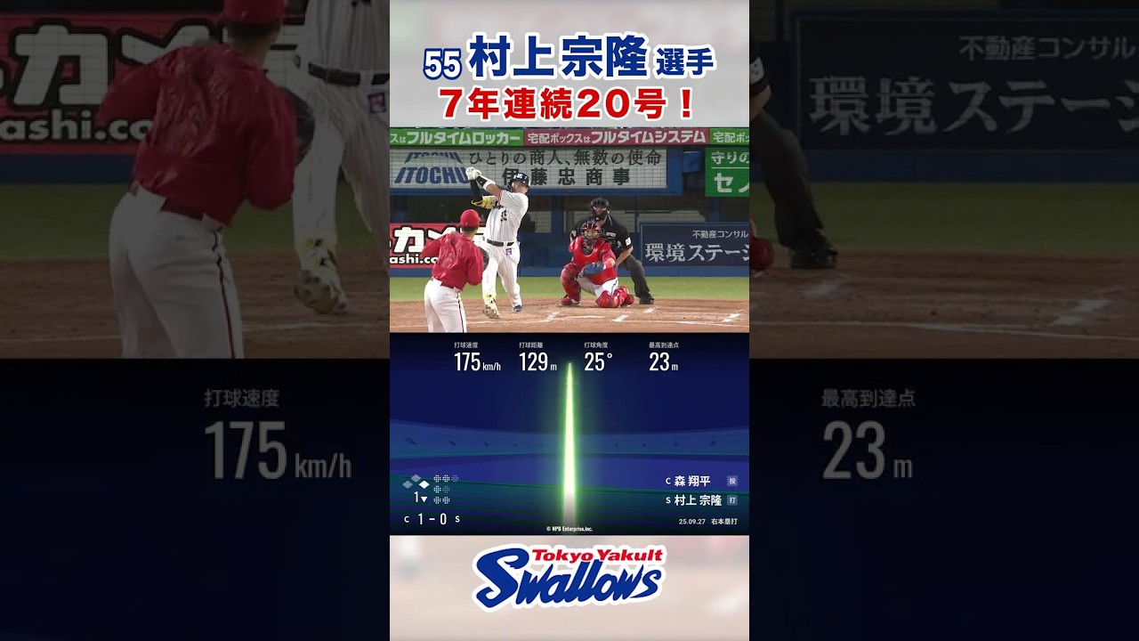 村上宗隆選手 7年連続20号! #swallows #村上宗隆 #shorts