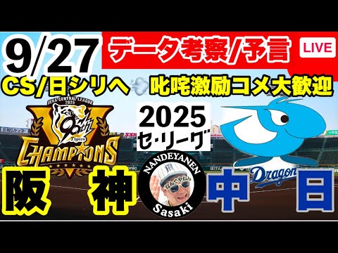 【阪神公式戦ライブ】9月27日 阪神vs中日 データ実況ライブ あなたの阪神応援を334倍楽しくします!#阪神タイガース #中日ドラゴンズ #阪神タイガース 25/9/27