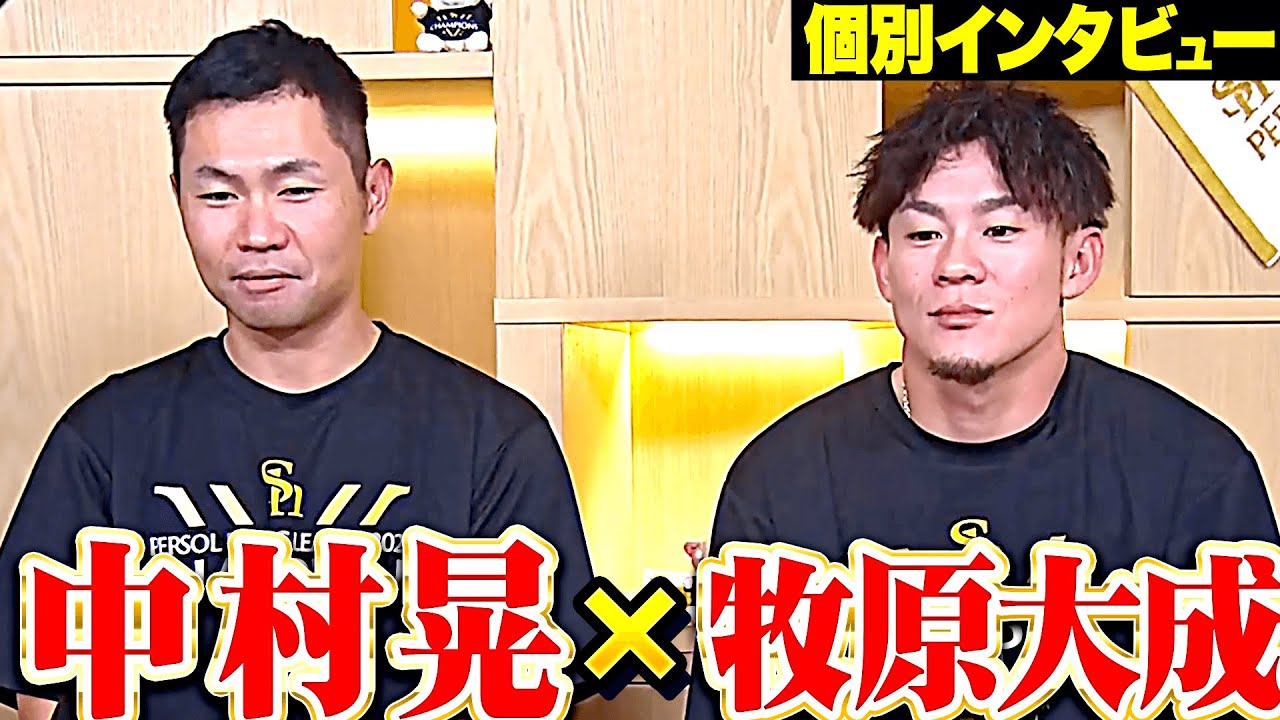個別インタビューにここぞでの大事な活躍を見せた中村晃、牧原大成の2名が登場!大事な場面を幾度も決めてきた2人のトークをお楽しみください!!