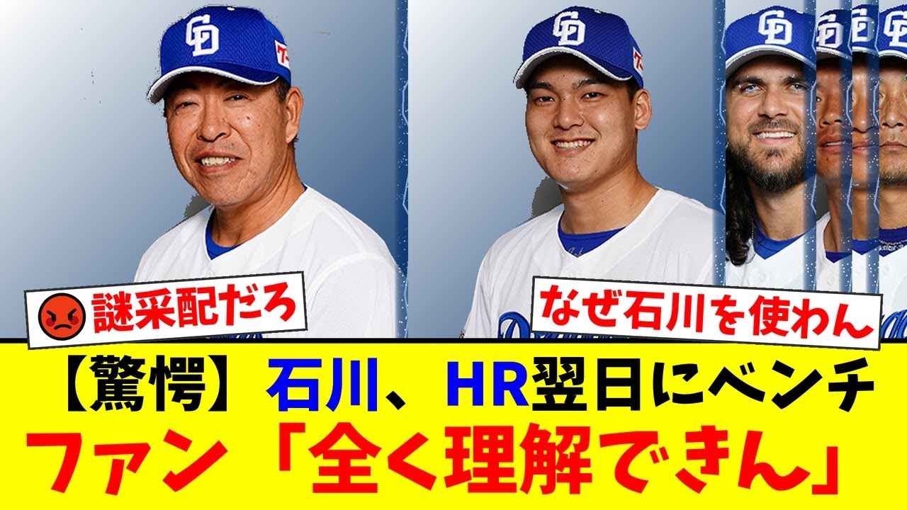 【中日】井上監督、前日HRの石川昂弥をベンチに置く謎采配にファンから『全く理解できん』『選手のモチベを下げる』と批判殺到。一部擁護の声も【プロ野球ファンの反応】