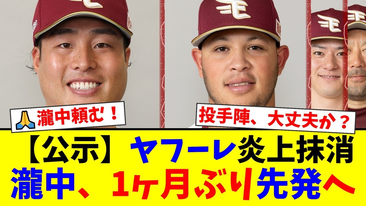 楽天、前日炎上のヤフーレを即抹消。代役は4連敗中の瀧中瞭太…1ヶ月ぶり先発にファンから「復活信じてる」「不安だ」と様々な声【プロ野球ファンの反応】