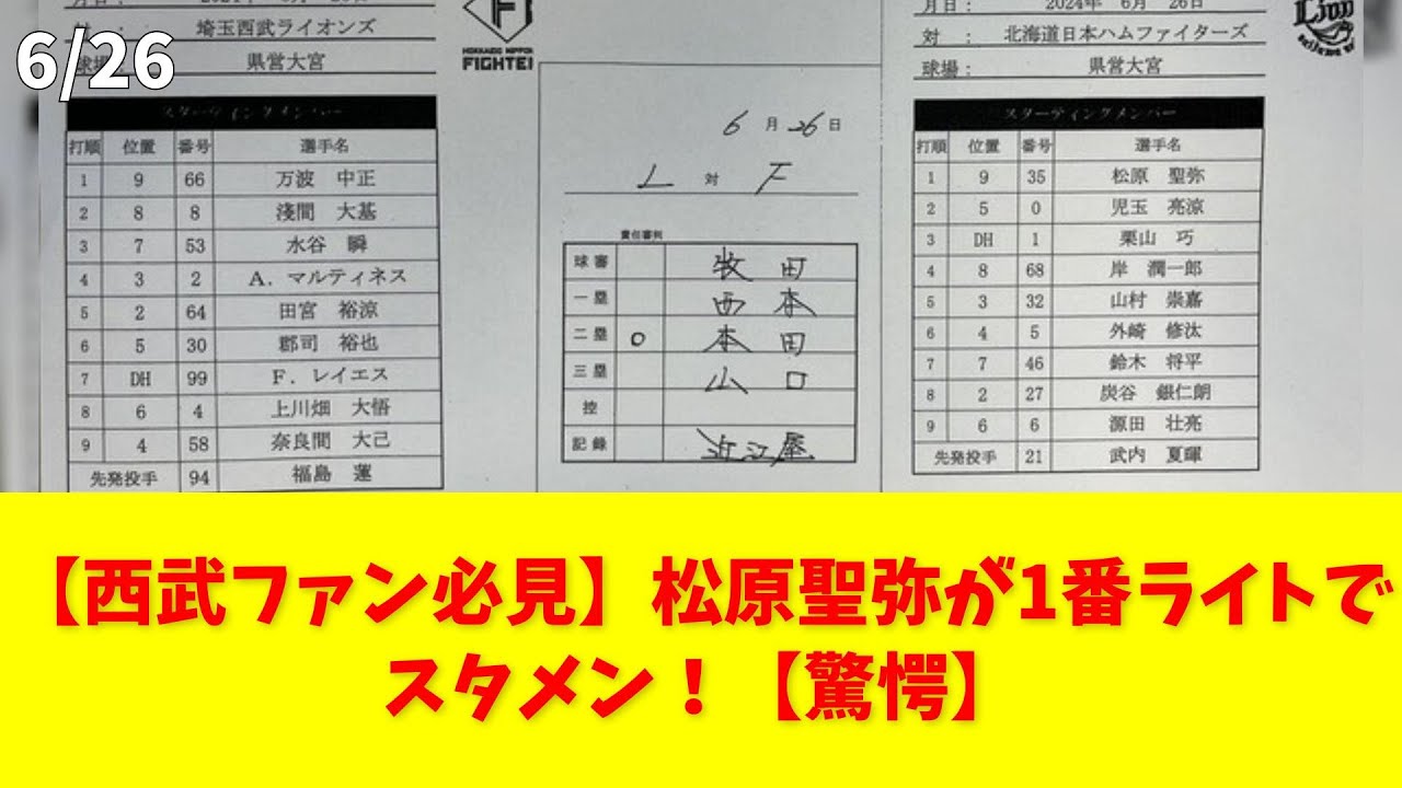【西武ファン必見】松原聖弥が1番ライトでスタメン!【驚愕】 #西武 #松原聖弥 #トレード #ライト #スタメン