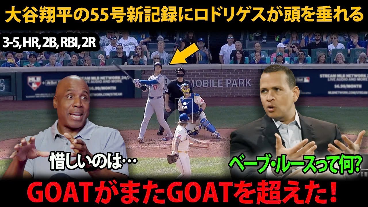 「GOATがまたGOATを超えた! 大谷翔平の55号新記録にロドリゲスも頭を垂れて敬意」