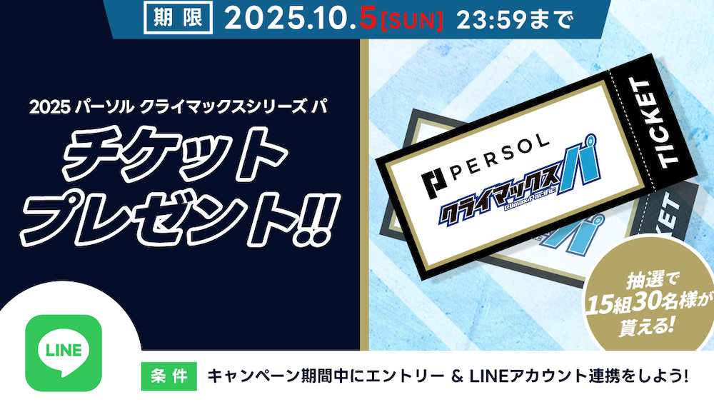 日頃のご利用に感謝を込めて、抽選で15組30名様に「2025 パーソル クライマックスシリーズ パ」観戦ペアチケットをプレゼント!