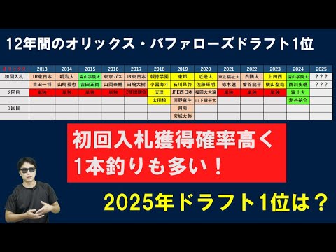 オリックスバファローズ過去12年のドラフト1位!2025年は!?
